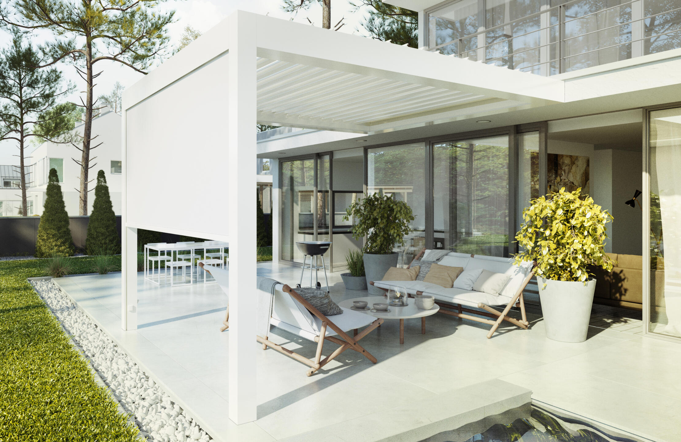 Le système de lames orientables ou rétractables vous permet d'adapter votre espace aux saisons et à vos envies.